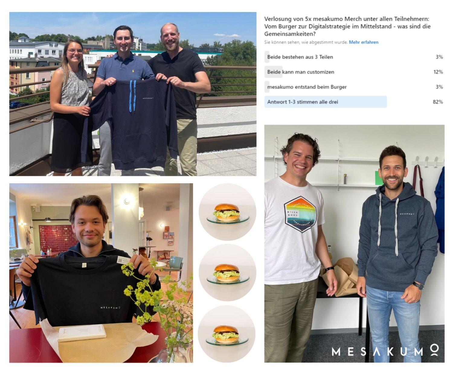 Die Gewinner unseres Quiz zur Gemeinsamkeit von Burgern und Digital-Strategie (https://lnkd.in/eNzmZf8f) freuen sich über ihren nagelneuen mesakumo Merch! 🎁😊🚀 Bei 3 der…